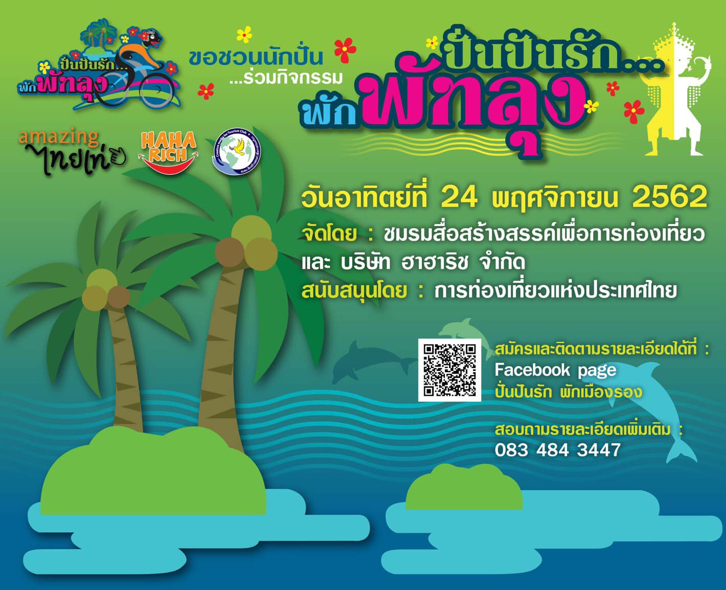 ล่าสุด เพื่อตอกย้ำความสำเร็จ ชมรมสื่อสร้างสรรค์การท่องเที่ยว, และบริษัท ฮาฮาริช จำกัด ได้ร่วมกับ การท่องเที่ยวแห่งประเทศไทย, วิริยะ ประกันภัย, ขนมปังเลอแปง , โรงแรมเมอร์เดอลองพัทลุง และโรงแรมศิวารอยัลพัทลุง จัดงานปั่นจักรยานท่องเที่ยวเมืองพัทลุง เพื่อฉลองความสำเร็จของโครงการ โดยจะมอบความสุข สนุกสนานในการปั่นจักรยานท่องเที่ยวครั้งพิเศษ ชวนนักปั่นทั่วประเทศมาร่วมปั่นจักรยานฟรี ที่จังหวัดพัทลุงกว่า 1500 คน ในกิจกรรมปั่นจักรยานเฉพาะกิจชื่อว่า “ปั่นปันรัก พักพัทลุง” ตอบสนองความต้องการให้กับนักปั่นที่มีใจรักสุขภาพ ชื่นชอบในการปั่นจักรยานท่องเที่ยวในเมืองไทย ได้ประสบการณ์แบบสัมผัสธรรมชาติ วิถีการดำเนินชีวิต วัฒนธรรม ชมแหล่งท่องเที่ยวที่สวยงามต่างๆ ของจังหวัดพัทลุง โดยงานจะจัดขึ้นในวันอาทิตย์ที่ 24 พฤศจิกายน 2562 ที่บริเวณอุทยานนกน้ำทะเลน้อย (ทะเลน้อย) จังหวัดพัทลุง