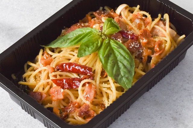 | สปาเก็ตตี้เบคอนผัดพริก เส้นสปาเก็ตตี้เหนียวนุ่ม |